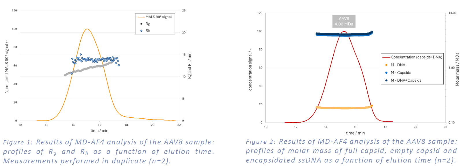 MD-AF4 proves to be a powerful tool for the comprehensive characterization of AAV8 vectors. The system provides accurate and reliable measurements of particle size, molar mass, and full-to-empty capsid ratios. These results align with expected values and demonstrate the potential of MD-AF4 for AAV analysis, crucial for gene therapy development and quality control.